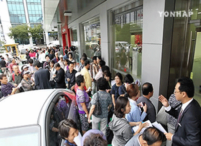 Hôm qua, hàng trăm người dân Hàn Quốc đã ồ ạt rút tiền tiết kiệm khỏi 7 ngân hàng đang bị đình chỉ hoạt động tại nước này do có tình hình tài chính yếu kém.