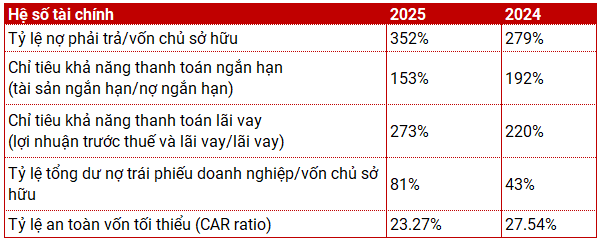 Trong khi đó, tỷ lệ nợ xấu (NPL) của công ty ở mức 1.66%%, thấp hơn 0.1 điểm % so với cùng kỳ năm trước. Ngoài ra, tỷ lệ an toàn vốn (CAR) đạt 23.3%, duy trì cao hơn so với yêu cầu tối thiểu là 9%. Tỷ lệ tổng dư nợ trái phiếu doanh nghiệp/vốn chủ sở hữu tăng từ 43% lên 81%.