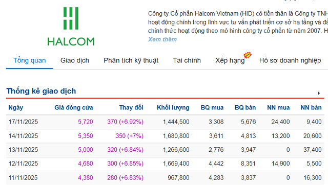 Sở Giao dịch Chứng khoán TPHCM (HOSE) vừa đề nghị CTCP Halcom Việt Nam (HOSE: HID) làm rõ nguyên nhân khiến cổ phiếu HID tăng trần 5 phiên liên tiếp từ 11-17/11.