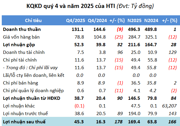 | HTI có kết quả kinh doanh cao kỷ lục trong năm 2025 | ||