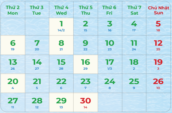 30/04: Hạn BCTC quý 1/2026 (công ty mẹ, hợp nhất, tổng hợp) Hạn ĐHĐCĐ thường niên Kết quả họp FOMC (Fed)