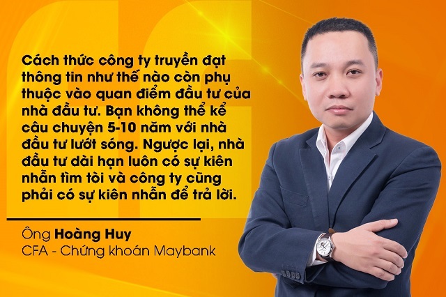 “Cách thức công ty truyền đạt thông tin như thế nào còn phụ thuộc vào quan điểm đầu tư của nhà đầu tư. Bạn không thể kể câu chuyện 5-10 năm với nhà đầu tư lướt sóng. Ngược lại, nhà đầu tư dài hạn luôn có sự kiên nhẫn tìm tòi và công ty cũng phải có sự kiên nhẫn để trả lời”, vị chuyên gia nhận xét.