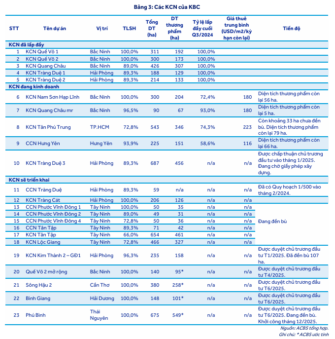 Nhìn chung, triển vọng của phân khúc KCN đang được cải thiện khi Chính phủ đang khẩn trương hoàn thiện và ban hành Nghị quyết về phát triển kinh tế có vốn đầu tư nước ngoài và tăng cường xúc tiến, thu hút các dự án FDI có quy mô lớn, công nghệ cao như bán dẫn, trí tuệ nhân tạo, công nghệ số. ACBS kỳ vọng KBC sẽ được hưởng lợi từ sự hỗ trợ của chính sách khi công ty có khả năng thu hút những tập đoàn công nghệ cao như Foxconn, LG và Luxshare-ICT.