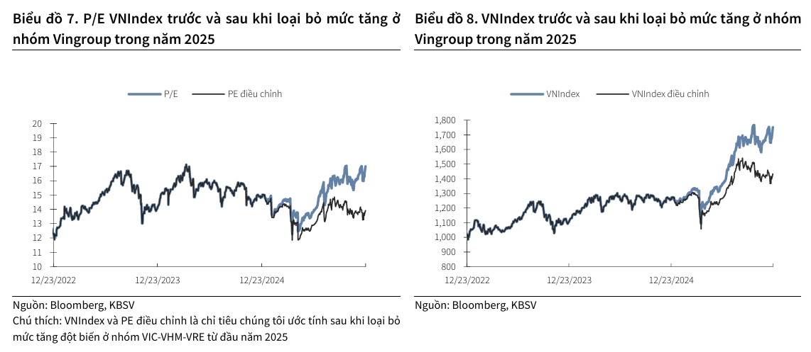 Dù vậy, định giá này vẫn thấp hơn bình quân 5 năm gần nhất ở 16.2 lần, phản ánh các lo ngại từ diễn biến tăng của mặt bằng lãi suất trong năm 2026, cũng như mức định giá cao cùng tầm ảnh hưởng lớn ở nhóm cổ phiếu Vingroup.