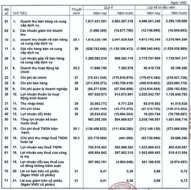 Nguồn: BCTC hợp nhất quý 4/2025