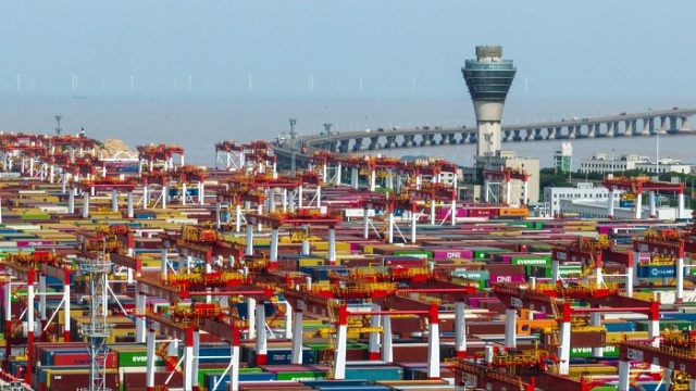 Cảng nước sâu Dương Sơn tại Thượng Hải. Tại Trung Quốc, trong giai đoạn 2010-2021, lượng phát thải từ nhập khẩu đã tăng hơn gấp đôi, trong khi phát thải nội địa chỉ tăng 42%. Ảnh: Qilai Shen/Bloomberg.