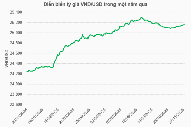 Trao đổi với người viết, ông Lưu Chí Kháng - Trưởng phòng Tự doanh, Chứng khoán Kiến Thiết Việt Nam (CSI) cho rằng, việc khối ngoại liên tục bán ròng trong năm 2025 chủ yếu do diễn biến tỷ giá không thuận lợi, VND mất giá so với USD trong khi USD lại mất giá so với các đồng tiền khác. Theo VietstockFinance, tỷ giá trung tâm tính đến ngày 29/11 ở mức 25,125 VND/USD, tăng gần 3.4% so với đầu năm.