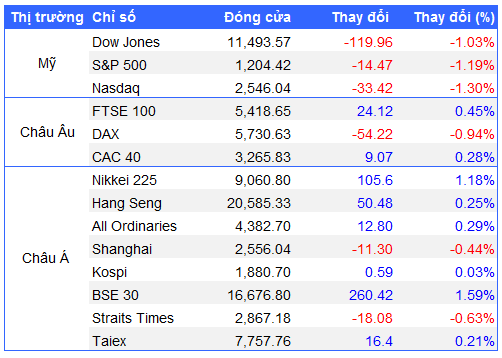 Diễn biến của các chỉ số chứng khoán chính trên thế giới ngày 01/09:
