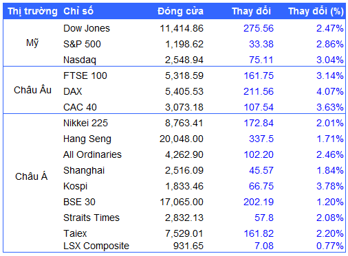 Diễn biến của các chỉ số chứng khoán chính trên thế giới ngày 07/09: