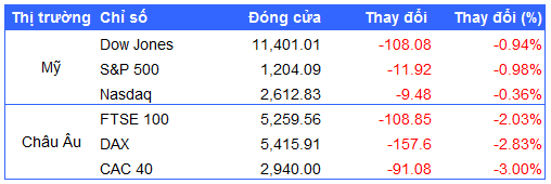 * Dow Jones giảm hơn 100 điểm do nỗi lo Hy Lạp
