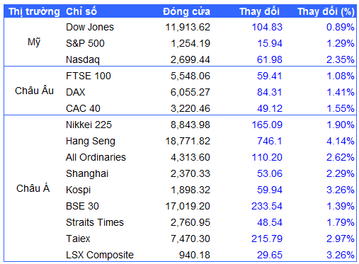 Diễn biến của các chỉ số chứng khoán chính trên thế giới ngày 24/10:
