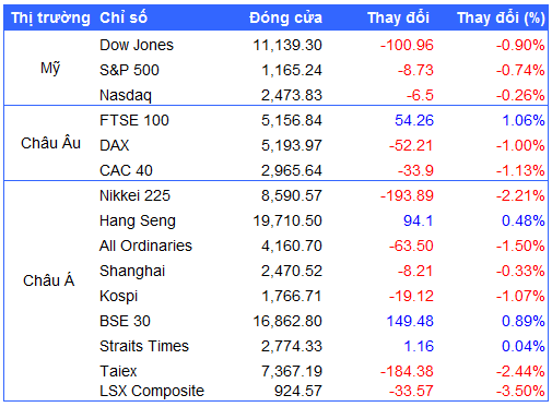 Diễn biến của các chỉ số chứng khoán chính trên thế giới ngày 06/09: