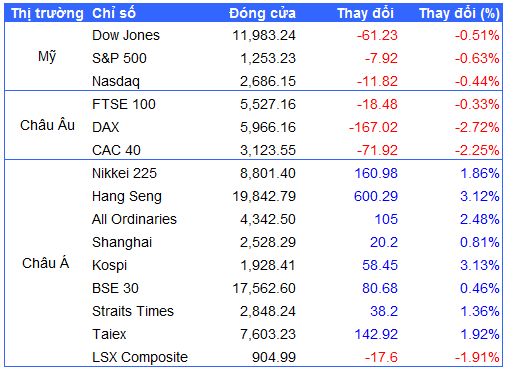 Diễn biến của các chỉ số chứng khoán chính trên thế giới ngày 04/11: