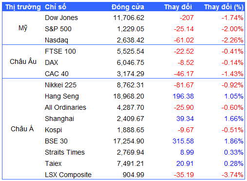 Diễn biến của các chỉ số chứng khoán chính trên thế giới ngày 19/10: