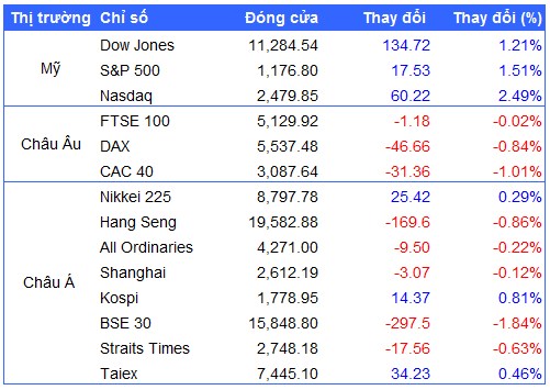 Diễn biến của các chỉ số chứng khoán chính trên thế giới ngày 26/08: