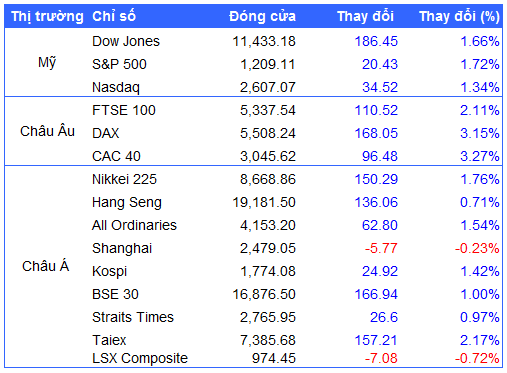 Diễn biến của các chỉ số chứng khoán chính trên thế giới ngày 15/09: