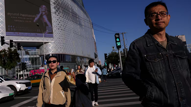 Người dân gần một trung tâm mua sắm ở Bắc Kinh. Nhu cầu trong nước phục hồi chậm sau đại dịch COVID-19