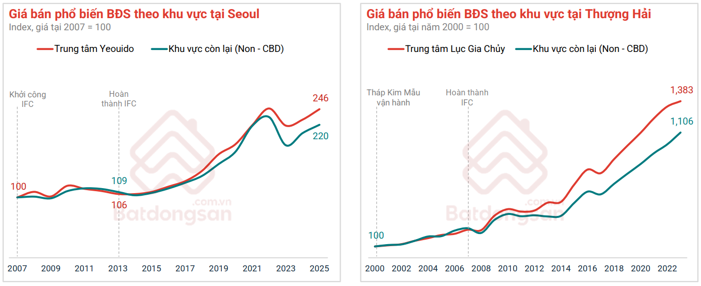 Tại Thượng Hải, đưa ra bộ 8 chính sách đặc thù cho IFC, ưu đãi thuế và trợ cấp, đặc biệt nới lỏng tỷ lệ sở hữu ngoại lên 100%. Tại đây, giá khu vực trung tâm mới tăng gần 14 lần từ năm 2000-2022, tạo ra chênh lệch giá 25% so với khu vực ngoài trung tâm.