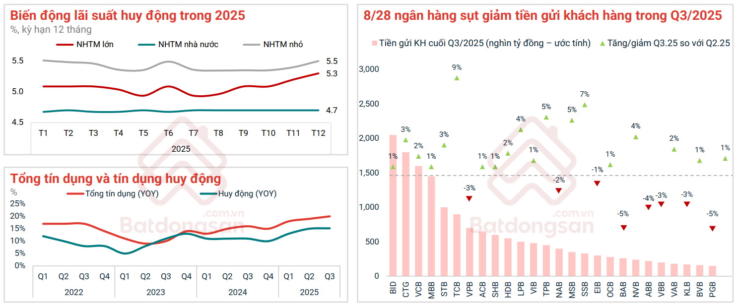 Ngược lại, ông Quốc Anh nhìn nhận bối cảnh năm 2025 hoàn toàn khác với 2022. Việc lãi suất huy động tăng nhẹ hiện nay nhằm tái lập mặt bằng vốn sau giai đoạn giảm sâu của 2024. Bên cạnh đó, Fed đang trong đà cắt giảm lãi suất, trong khi lạm phát tại Việt Nam, Mỹ, châu Âu hiện ở vùng được kiểm soát, đi ngang thay vì tăng nóng như 2022.