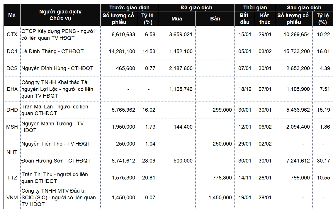 Danh sách lãnh đạo công ty và người thân giao dịch từ ngày 2-6/2/2026