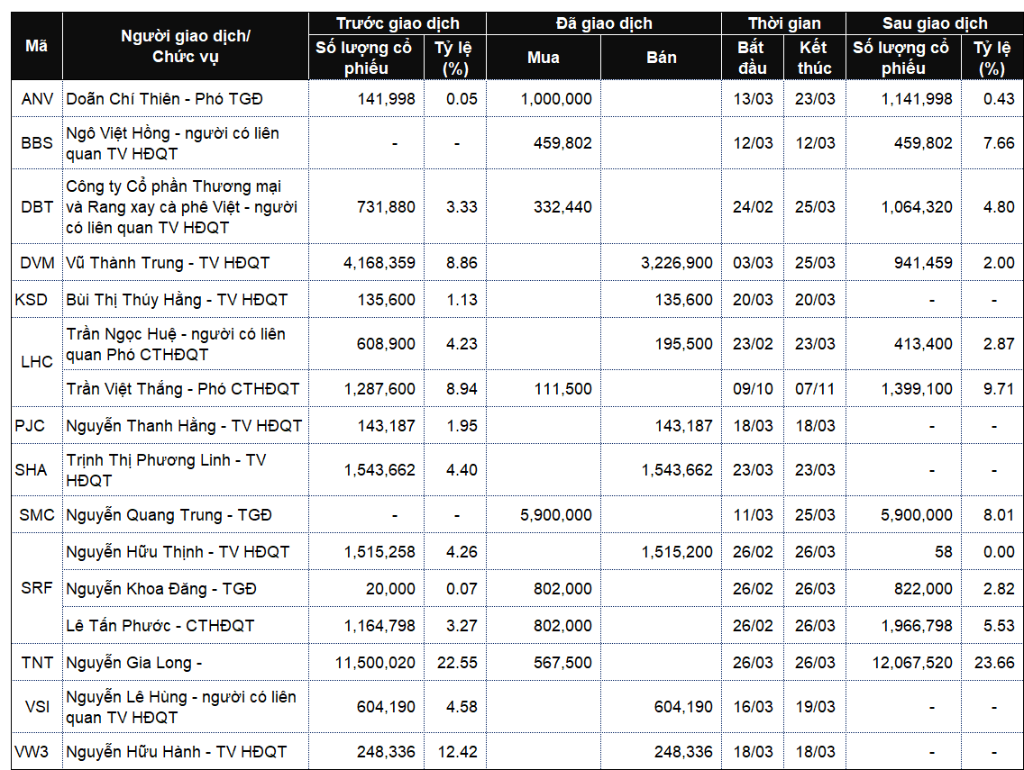 Danh sách lãnh đạo công ty và người thân giao dịch từ ngày 23-27/3/2026