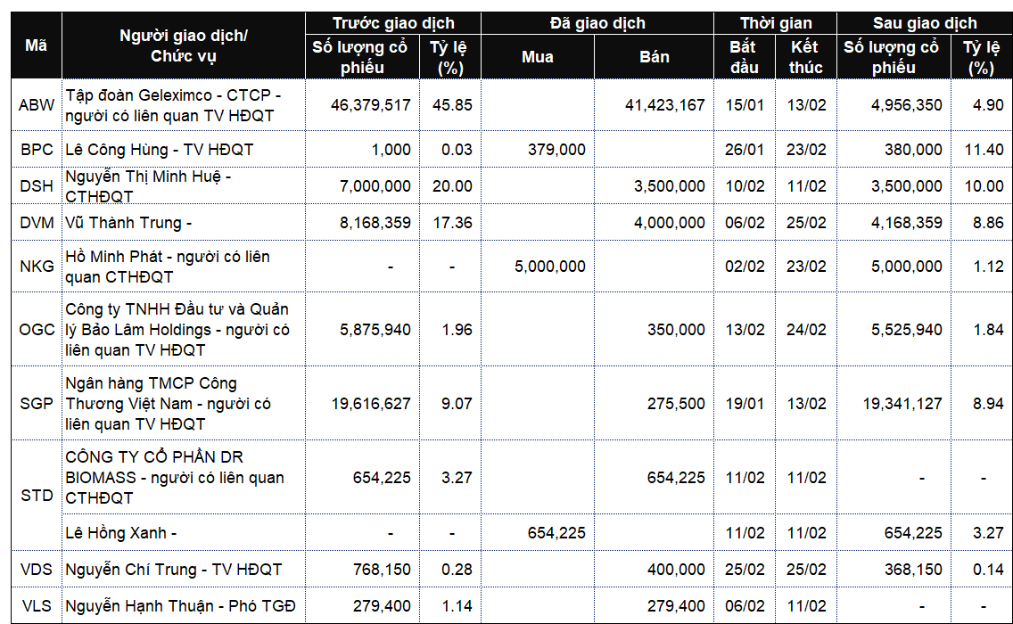Danh sách lãnh đạo công ty và người thân giao dịch từ ngày 23-27/2/2026