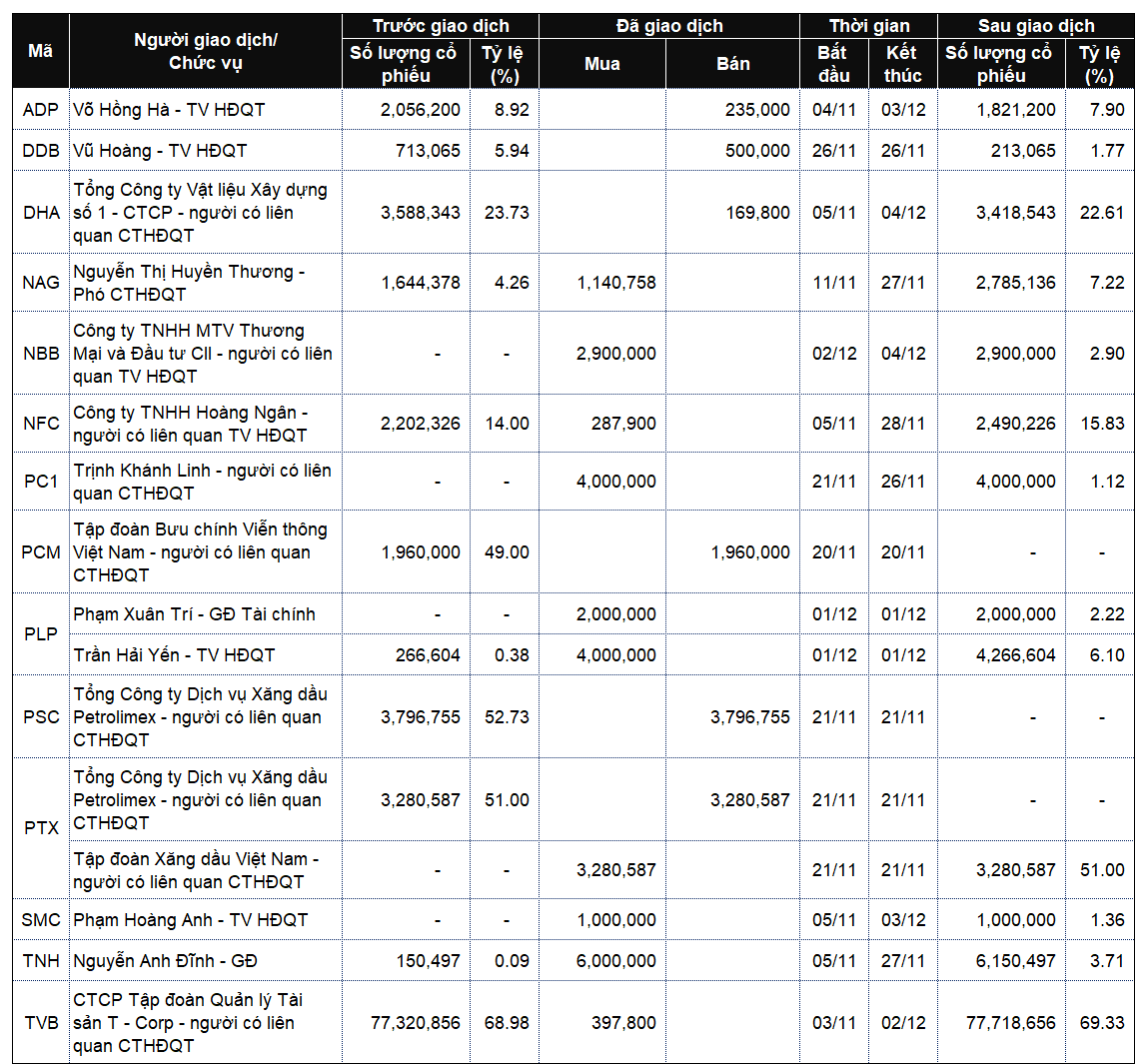Danh sách lãnh đạo công ty và người thân giao dịch từ ngày 1-5/12/2025