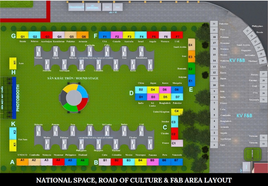 Hoạt động triển lãm và không gian văn hóa đa quốc gia trên "Con đường Văn hóa", khách tham quan có thể ghé thăm các gian hàng đến từ gần 50 quốc gia như Trung Quốc, Hàn Quốc, Nhật Bản, Hoa Kỳ, Nga, Pháp, Iran, Angola, Lào, Philippin,... Các gian hàng hoạt động từ 9h00 – 21h30 ngày 11–12/10/2025, nơi giới thiệu nét đặc trưng về lịch sử, nghệ thuật, ngôn ngữ, trang phục và phong tục của các quốc gia. Khách tham quan cũng có cơ hội trải nghiệm mặc trang phục truyền thống của Việt Nam và các quốc gia khác, hòa mình vào không khí giao lưu quốc tế.