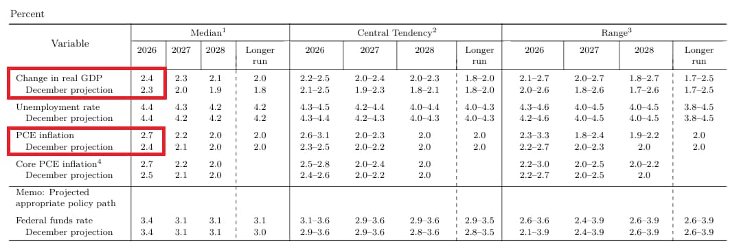 Song song với đó, thông điệp từ cuộc họp của Ủy ban Thị trường mở Liên bang (FOMC) ngày 17 - 18/03, giữa lúc chiến sự vô cùng căng thẳng, cũng mang lại những tín hiệu tích cực nhất định. Việc nâng dự báo tăng trưởng GDP Hoa Kỳ năm 2026 lên 2.4% (dự báo tháng 12/2025 là 2.3%) cho thấy các nhà hoạch định chính sách, vốn dĩ là những người sở hữu nhiều dữ liệu và có góc nhìn sâu sát với nền kinh tế, vẫn không cảm thấy bi quan.