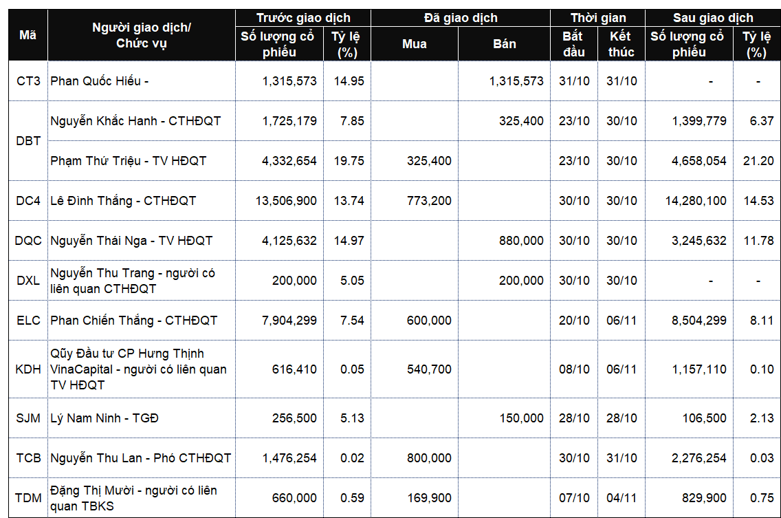 Danh sách lãnh đạo công ty và người thân giao dịch từ ngày 3-7/11/2025
