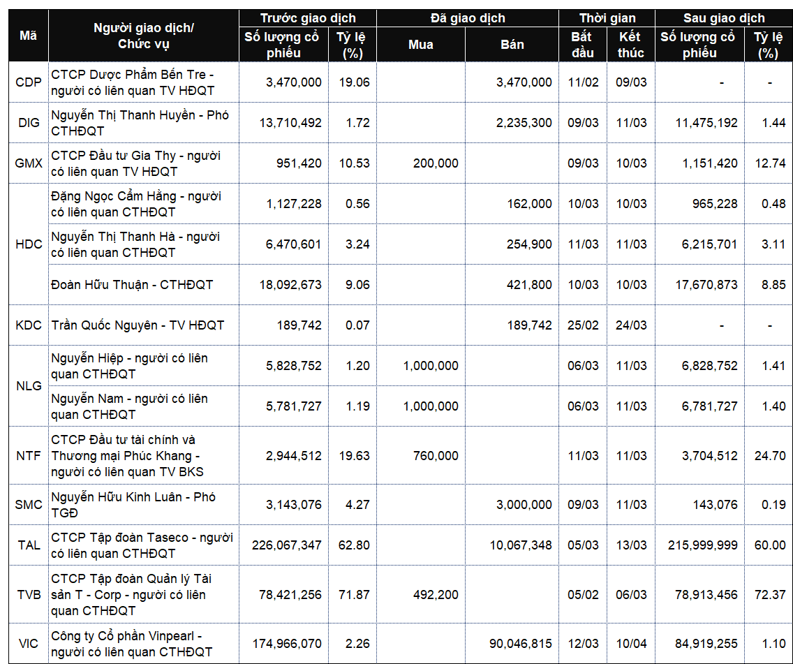 Danh sách lãnh đạo công ty và người thân giao dịch từ ngày 9-13/3/2026
