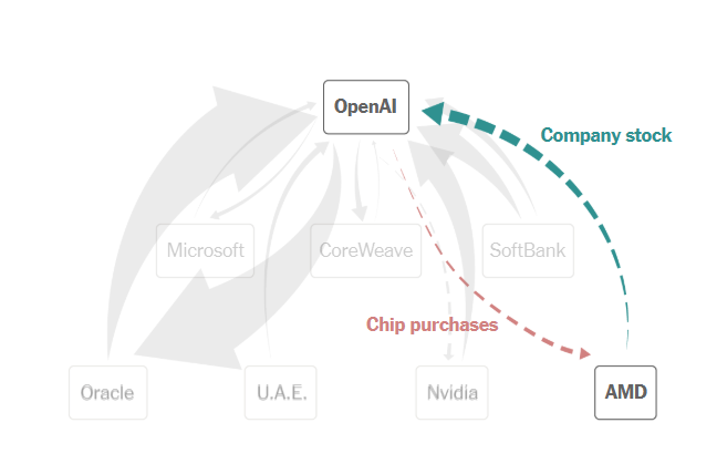 Chỉ hai tuần sau thỏa thuận với Nvidia, OpenAI tiếp tục gây bất ngờ khi ký kết hợp đồng với AMD - cho phép họ mua tới 160 triệu cổ phiếu của nhà sản xuất chip này với mức giá ưu đãi chỉ 1 xu mỗi cổ phiếu. Thỏa thuận này có thể mang lại cho OpenAI khoảng 10% cổ phần trong AMD, tạo nguồn vốn đáng kể khi công ty đẩy mạnh xây dựng hạ tầng trung tâm dữ liệu mới.