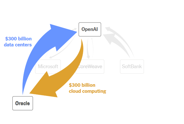 Theo một thỏa thuận tương tự, Oracle - gã khổng lồ phần mềm và điện toán đám mây - đã cam kết đầu tư 300 tỷ USD để xây dựng hệ thống trung tâm dữ liệu mới cho OpenAI tại 4 bang: Texas, New Mexico, Michigan và Wisconsin. Đổi lại, OpenAI sẽ chi trả cho Oracle một khoản tiền tương đương để sử dụng cơ sở hạ tầng điện toán này trong những năm tới.