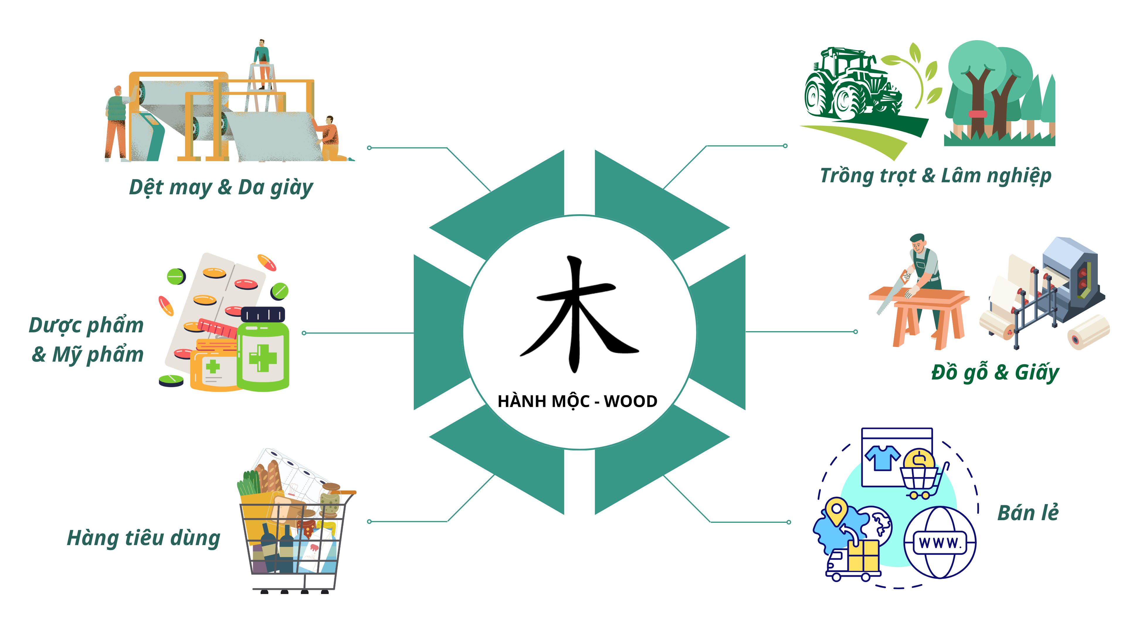 Hành Mộc đại diện cho hoạt động sản xuất và tiêu dùng, mang lại triển vọng tăng trưởng tương đối tích cực cho các ngành như gỗ, chế biến sản phẩm từ gỗ, dệt may, may mặc, giày dép và thực phẩm.