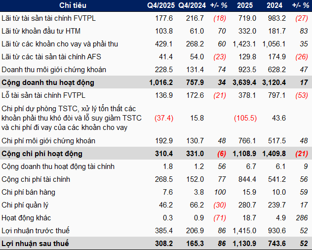 Kết quả kinh doanh quý 4 và lũy kế năm 2025 của MBS