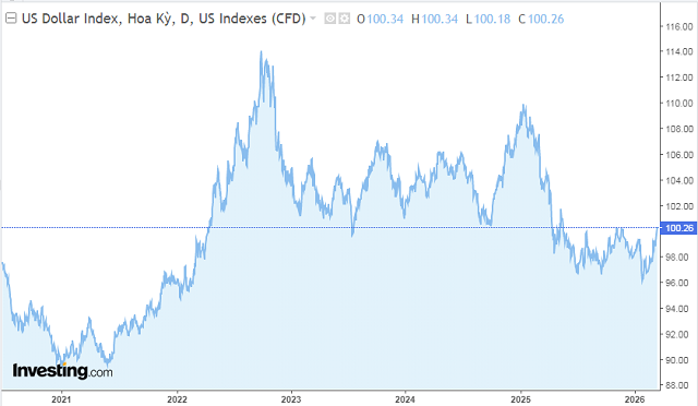 Diễn biến chỉ số DXY trong hơn 5 năm qua