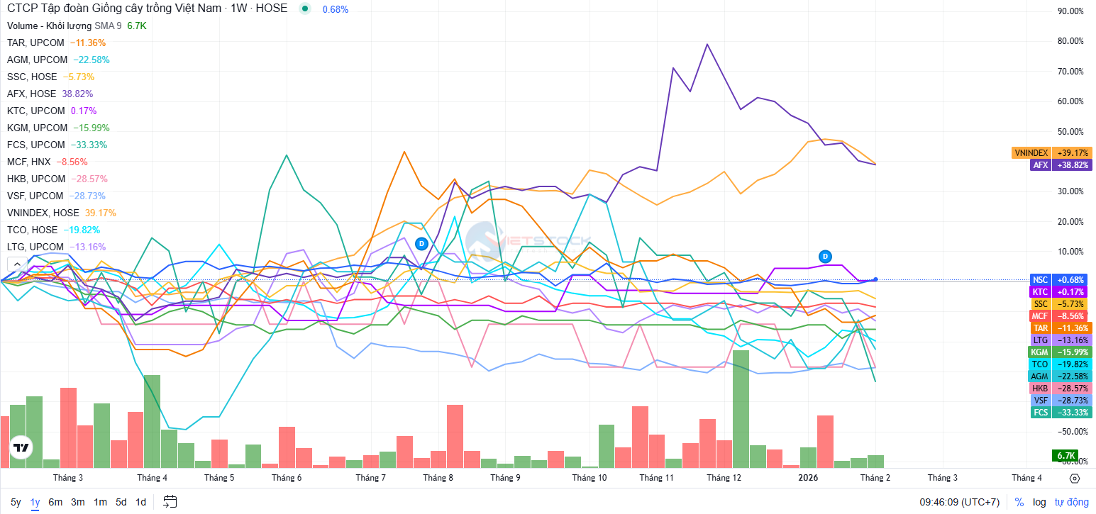 Trong xu hướng chung, Vinaseed (NSC) tiếp tục giữ vai trò trụ cột lợi nhuận. Năm 2025, NSC lãi ròng gần 230 tỷ đồng, tăng 5%, bất chấp doanh thu giảm 6% xuống dưới 2,300 tỷ đồng. Dù không hoàn thành kế hoạch năm do hụt hơi trong quý cuối, Doanh nghiệp vẫn xác lập mức lãi cao thứ 2 trong lịch sử và duy trì năm thứ 5 liên tiếp lợi nhuận vượt 200 tỷ đồng, nhờ chiến lược tiết giảm chi phí và kiểm soát quản trị.