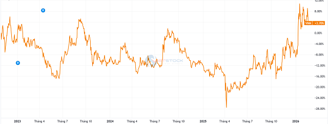 Diễn biến giá cổ phiếu cũng cho thấy phần nào bức tranh. Năm 2025 chứng kiến pha hồi phục đáng kể của cổ phiếu VNM sau quãng thời gian dài suy giảm kể từ đỉnh năm 2018. Từ nhịp lao dốc hồi tháng 4 có thời điểm xuống dưới 50,000 đồng/cp (sau điều chỉnh cổ tức) do tác động từ thông tin thuế quan của Mỹ, giá cổ phiếu dần lấy lại đà tăng và khép lại năm trên 60,000 đồng/cp. Bước sang đầu 2026, có lúc thị giá vượt 70,000 đồng/cp.