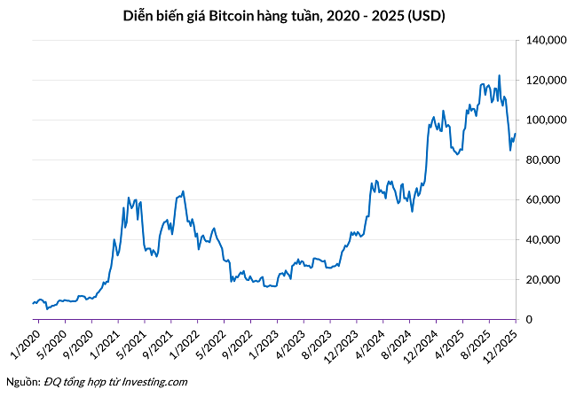 Hậu quả là phần bù (premium) sụp đổ. Tại ngày 9/12/2025, vốn hóa của MSTR là gần 55 tỷ USD, trong khi giá trị Bitcoin trong danh mục là 60 tỷ USD, trái ngược với quá khứ khi phần bù có lúc lên tới hơn 2 lần.