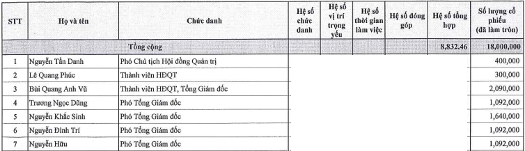 Hai thành viên HĐQT còn lại được quyền mua ESOP là ông Nguyễn Tấn Danh và ông Lê Quang Phúc lần lượt được mua 400,000 cp và 300,000 cp.