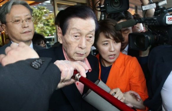 Hình ảnh người sáng lập ra tâp đoàn Lotte Shin Kyuk-ho xuất hiện khi rời Lotte Hotel để đến bệnh viện mùa hè vừa qua