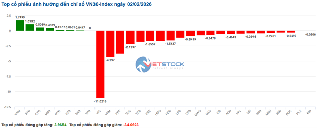 Nhịp đập Thị trường 02/02: Áp lực bán mạnh ở nhóm bất động sản và tài chính, VN-Index có nhịp giảm sâu