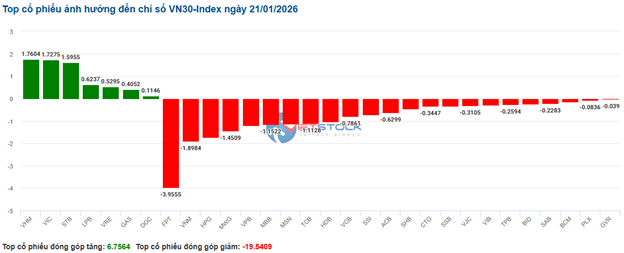 Nhịp đập Thị trường 21/01: Áp lực bán dần lan rộng, nhóm bất động sản và năng lượng níu giữ điểm số
