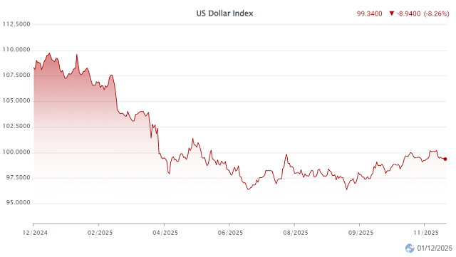 Diễn biến DXY từ đầu năm 2025 đến ngày 01/12
