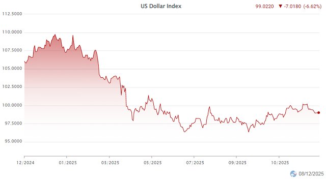 Diễn biến DXY từ đầu năm 2025 đến ngày 08/12