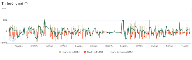 Trong tuần từ 03-10/11, Ngân hàng Nhà nước (NHNN) tiếp tục bơm ròng tuần thứ tư liên tiếp trên thị trường mở (OMO), với tổng giá trị hơn 39 ngàn tỷ đồng, cao hơn đáng kể so với 854 tỷ đồng của tuần trước đó.