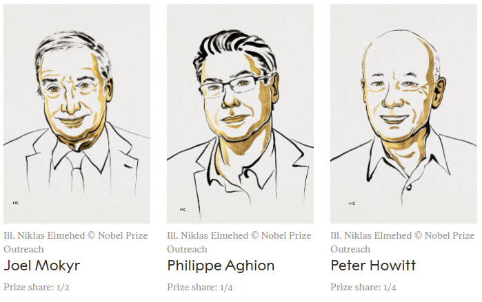 Công trình được vinh danh của ông Mokyr là về việc “xác định các điều kiện tiên quyết để duy trì tăng trưởng bền vững thông qua tiến bộ công nghệ". Trong khi đó, ông Aghion và ông Howitt được vinh danh khi đưa ra "lý thuyết về tăng trưởng bền vững thông qua cơ chế phá hủy mang tính sáng tạo (creative destruction)".