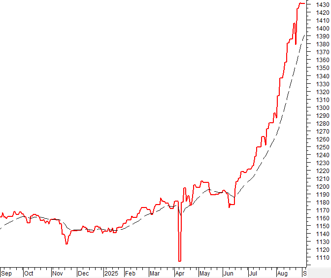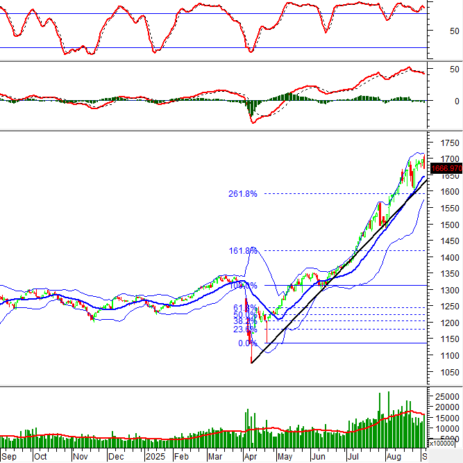 Trong phiên giao dịch ngày 05/09/2025, VN-Index giảm điểm đồng thời xuất hiện mẫu hình nến Bearish Engulfing cùng khối lượng giao dịch gia tăng và vượt mức trung bình 20 phiên cho thấy tâm lý khá bi quan của nhà đầu tư.