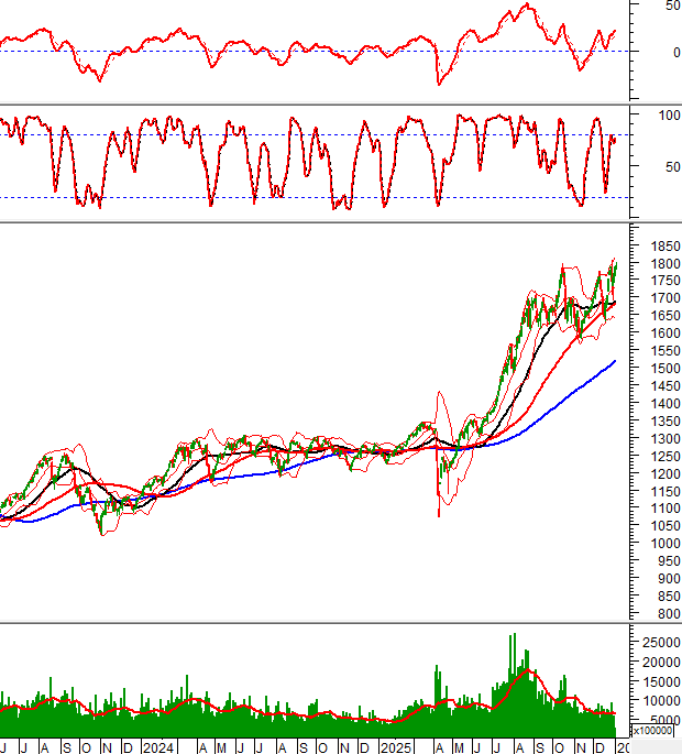 Khối lượng giao dịch ở mức thấp nên chỉ số khó có thể vượt qua đường Middle của Bollinger Bands trong ngắn hạn.