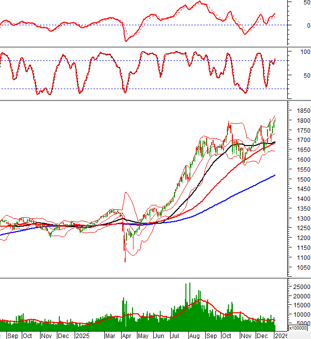 Trong phiên giao dịch sáng ngày 06/01/2026, VN-Index tiếp tục đà tăng trưởng và nhiều khả năng sẽ vượt đỉnh cũ tháng 10/2025 (tương đương vùng 1,740-1,795 điểm).